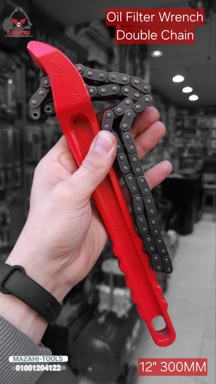 مفتاح فلاتر جنزير مزدوج 12″ 40- 160 مم Code: 00F3 Oil Filter Remover 12″ 300mm مفتاح إزالة وتركيب فلاتر السيارات والدرجات النارية يتميز بحجم كبير 12″ 300 مم مع جنزير طويل مزدوج لسهولة الأحكام في عملية الصيانة