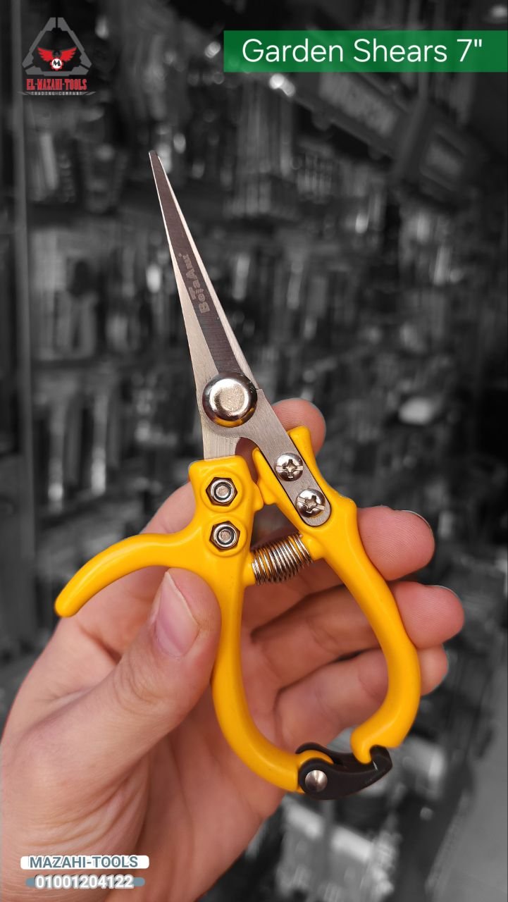 Code: BTM168 Garden Shears 7″ تصميم يد مريح للغاية ومتناسب شفرة رفيعة حادة لتشذيب ووصول لأضيف الاماكن مطلي بالكروم ومضاد للصدأ مناسب لأعمال الحديقة والأعمال المنزلية المختلفة سوستة ارتداد داخلية وقفل تأمين معدن عالي الجودة لعمر طويل بحجم 7″ 168 مم