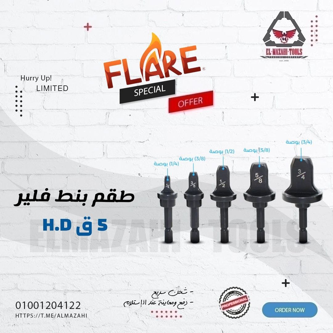 الحجم: 3/4 بوصة (19 ملم)، 5/8 بوصة (15.9 ملم)، 1/2 بوصة (12.7 ملم)، 3/8 بوصة (9.5 ملم)، 1/4 بوصة (6.3 ملم)