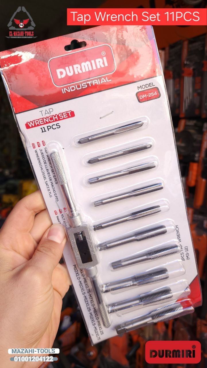 Code: DM-254 Tap Wrench Set 11PCS بوجي دكر قلاوظ M3-M12 مم مع 10 دكر قلاوظ بمقاسات M6X1.0 M6X0.75 M7X1.0 M8X1.0 M8X1.25 M10X1.0 M10X1.5 M12X1.25 M12X1.5 M12X1.75