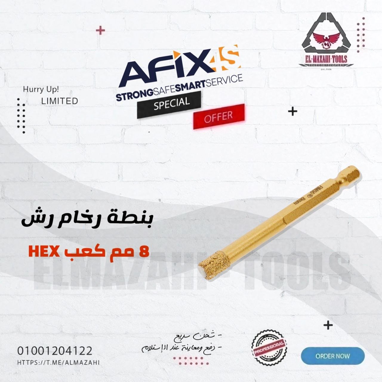 – ينظف حواف ثقب الحفر حتى على أصعب الأسطح المصقولة والمطلية بالمينا. تبريد بإضافة الماء تزيد من عمر الخدمة.