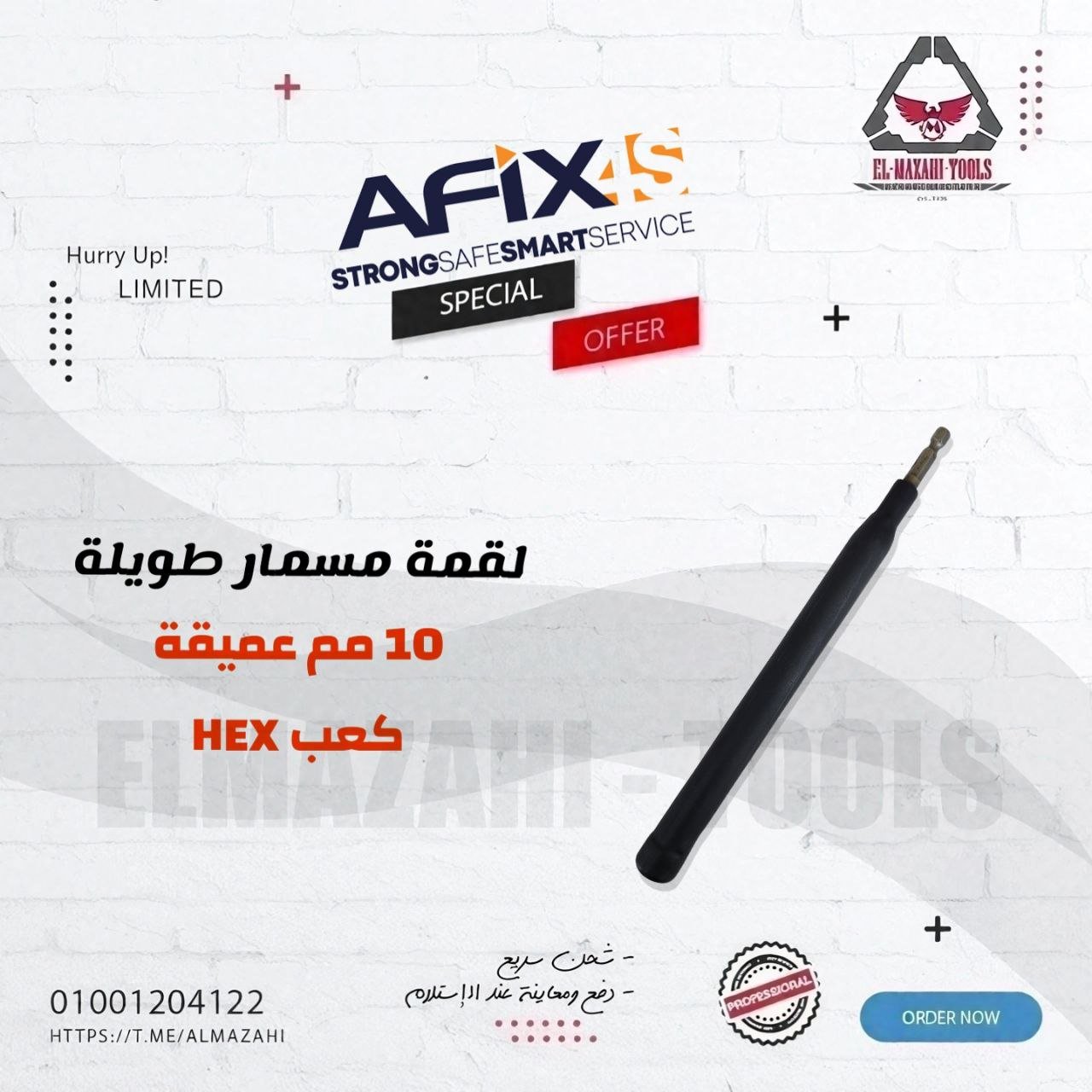 لقمة رباط مسمار تيش 10 مم طويلة عمق 15 سم كعب سداسي