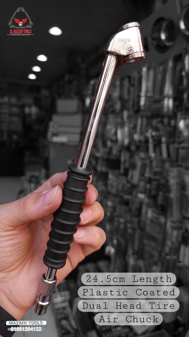24.5cm Length Plastic Coated Dual Head Tire Air Chuck