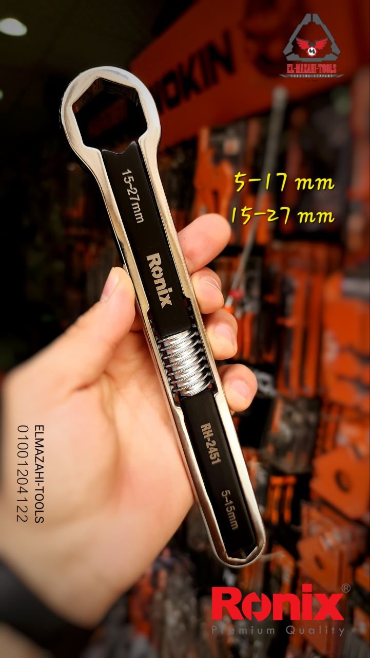 Code: RH2451 2ways Uni-wrench(5-17/15-27) مفتاح ربط قابل للتعديل، يمكنك تعديل طوله حسب احتياجاتك. يتوفر بـ 23 نوعًا من المواصفات. هيكل من الفولاذ الكربوني ضد الصدأ. أفضل أداة لراكبي الدراجات الهوائية. حقيبة مفاتيح كاملة في مفتاح واحد.