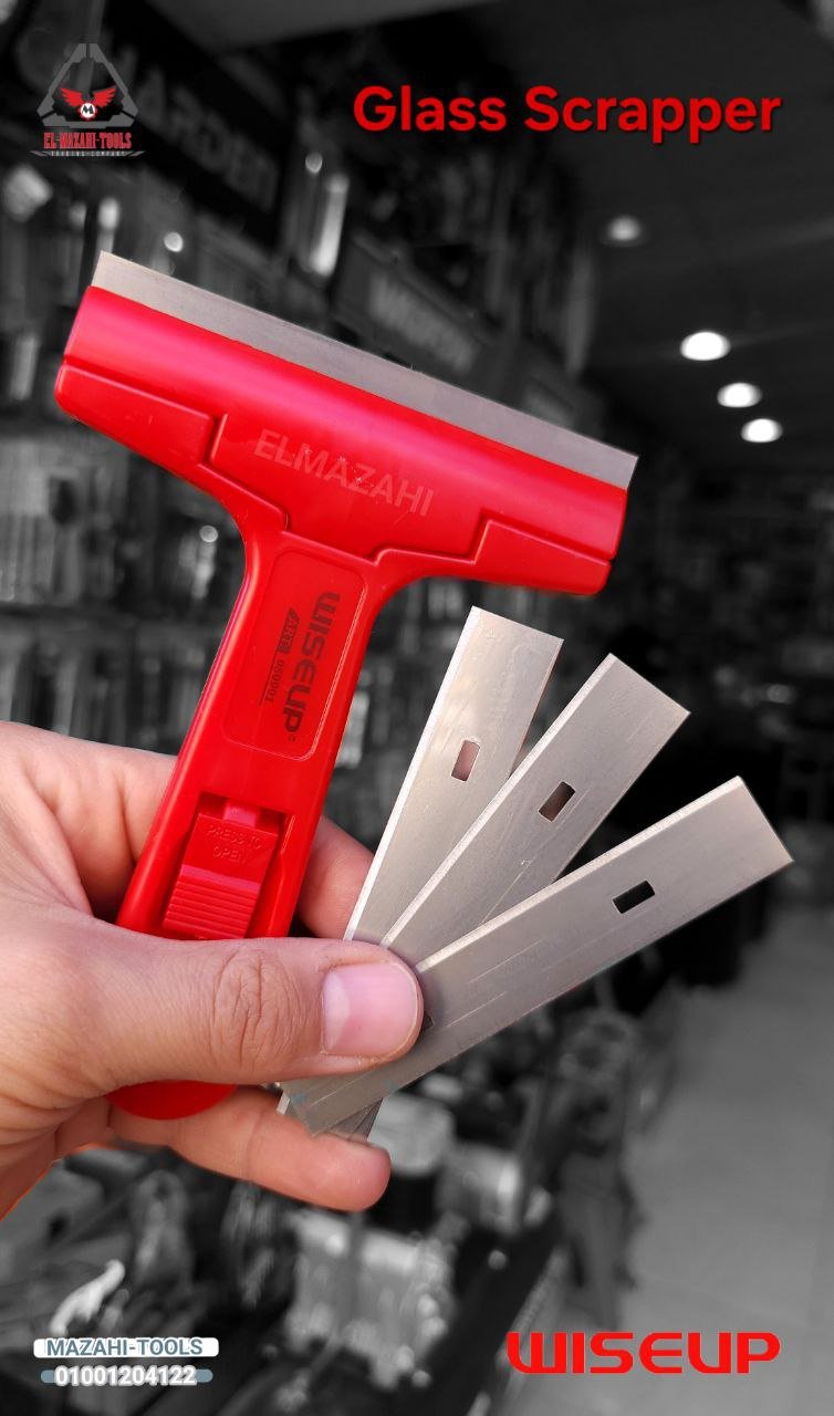مقشطة زجاج 102 مم مع 3 شفرات من WISEUP Glass Scrapper Code: WS050901 – مكشطة الزجاج والاسطح اللامعة صغيرة الحجم – الحجم: 102 ملم – 3 قطعة شفرة اضافية – حجم الشفرة: 18*100 مللي